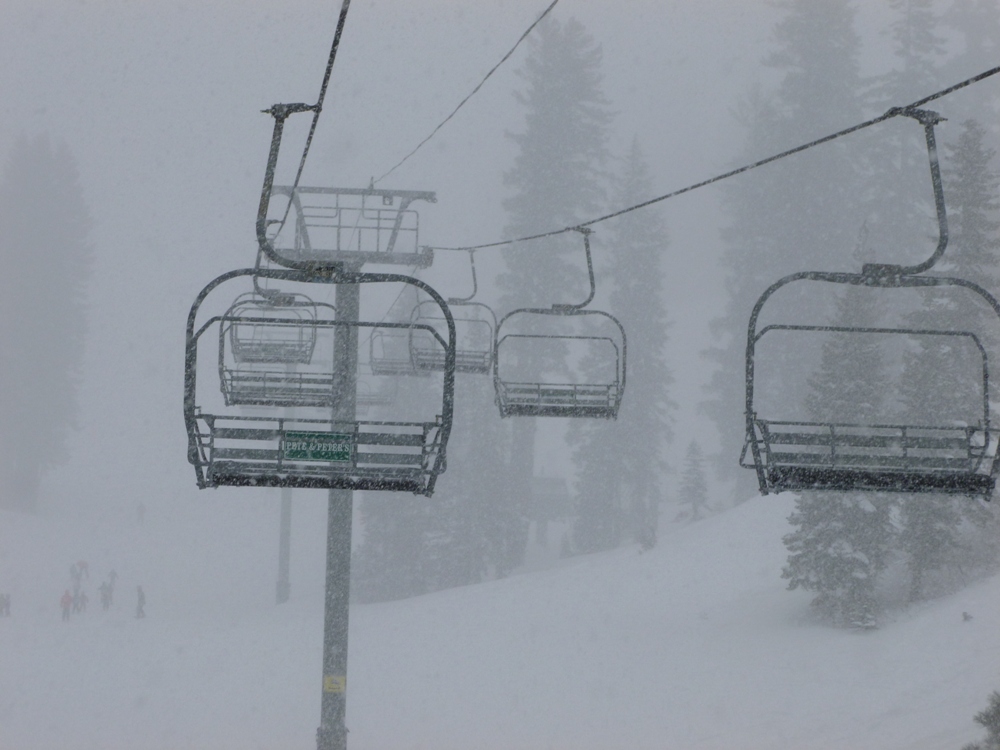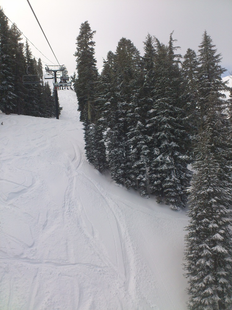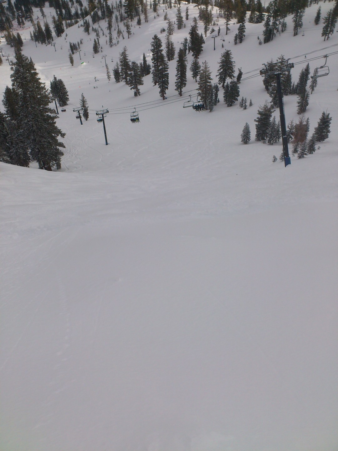 Alpine Meadows, California. 9:30 AM, temp around 22 F, 7 inches fresh snow.