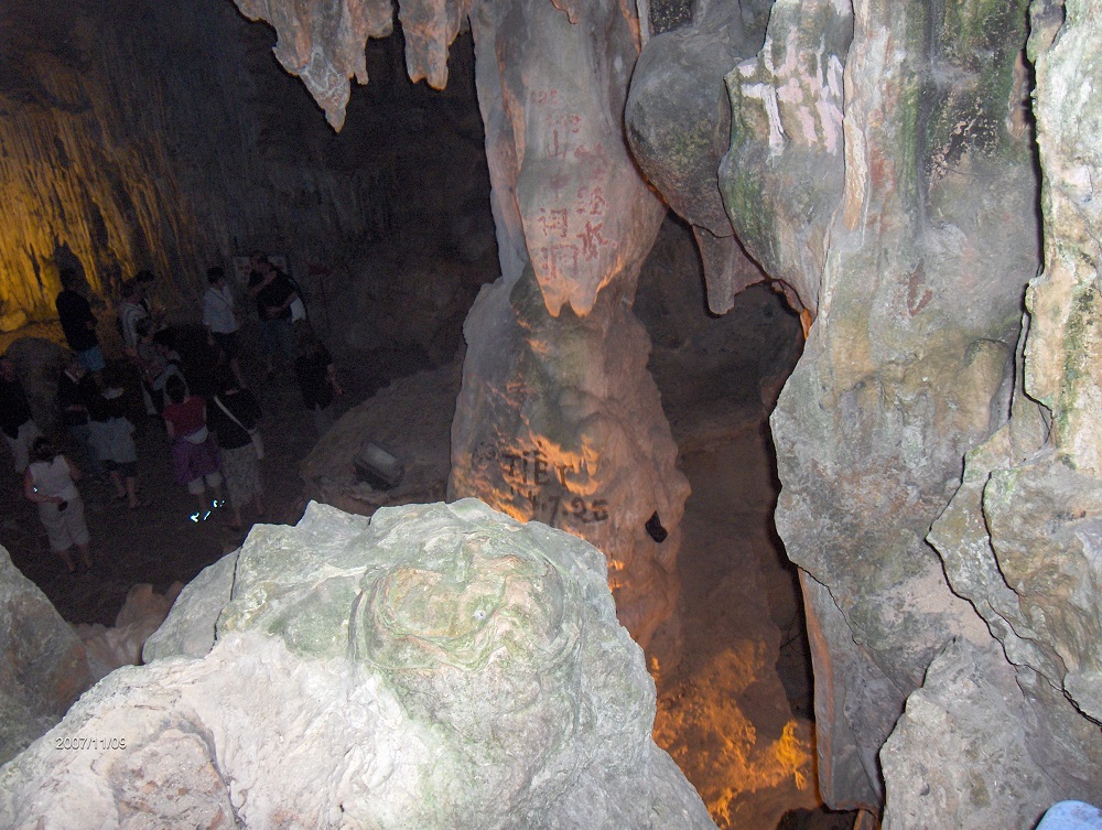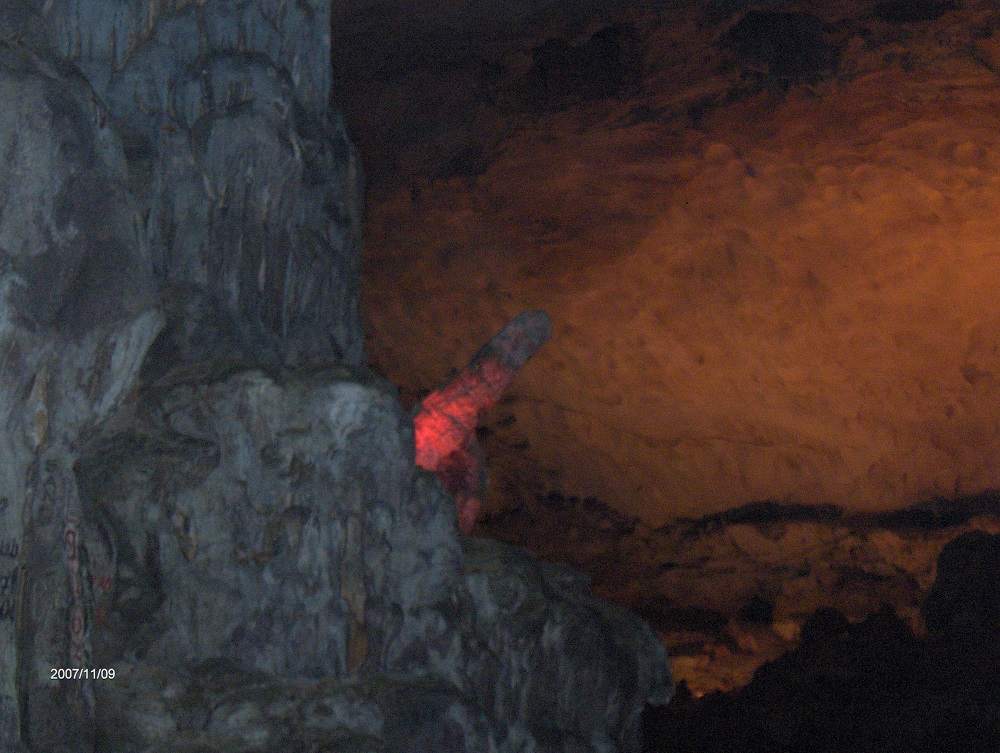Tour guides delight in showing things like this stalagmite (not what they call it) to tourists, shining lights on it to be sure no one can miss the reference: