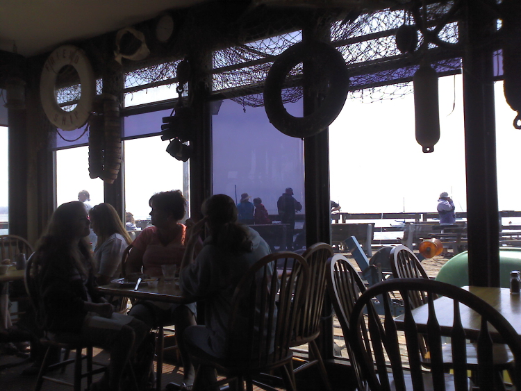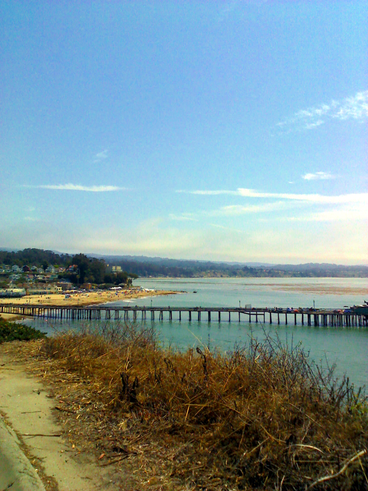 In Capitola, you can park up on a bluff above the town at meters. These were filled so we parked on a side street beyond the meters then enjoyed the long walk down to the beach, the wharf, and the restaurant.