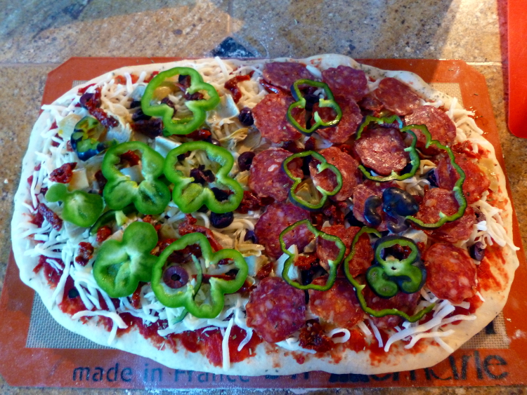 3. Make weird shaped pizza so it fits on a Silpat.