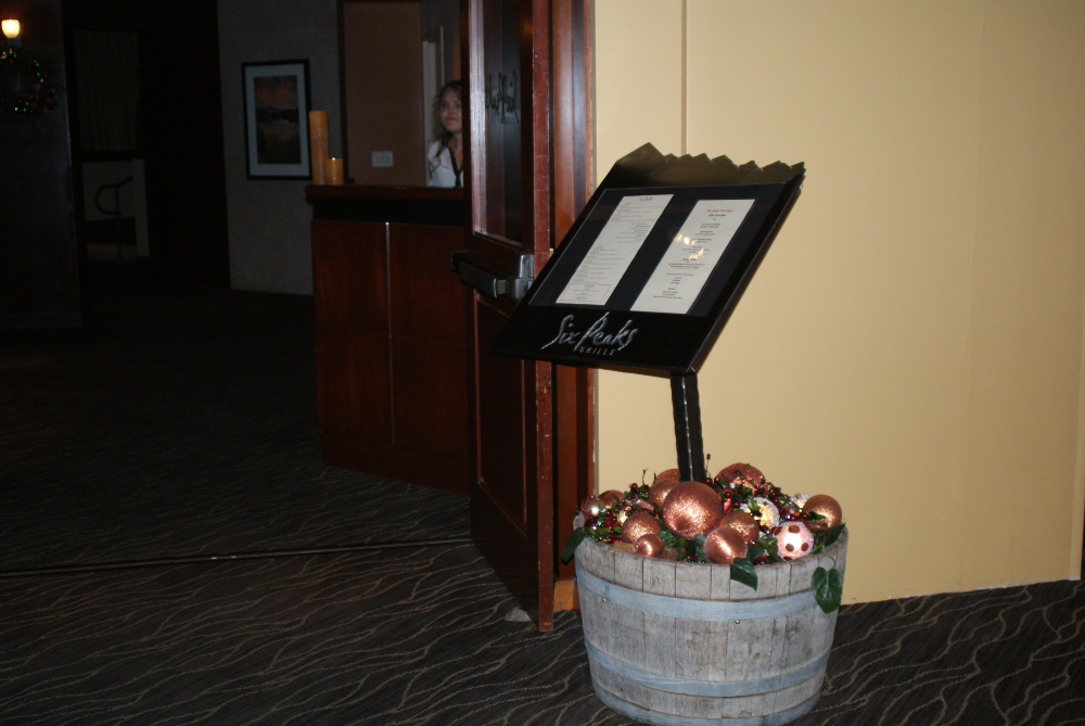 As we were leaving, I snapped this shot of the entry way. I like how they have the bell and the wreath and I loved that my camera picked up the snow flakes.