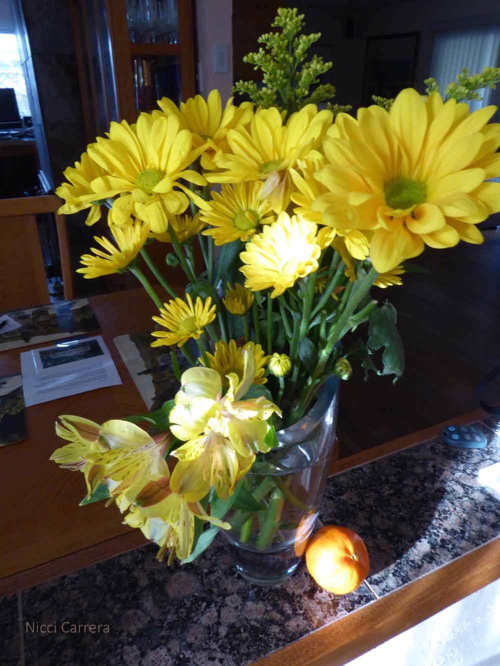 When I opened the front front door, which faces East, the sunlight struck the bouquet of flowers. It looked so lovely I took a picture. Or two. When I returned from my walk, the sun had set, and I found this light also quite lovely. Share this: Click to share on X (Opens in new window) X Click to email a link to a friend (Opens in new window) Email Click to share on Tumblr (Opens in new window) Tumblr Click to share on Facebook (Opens in new window) Facebook Click to share on Pinterest (Opens in new window) Pinterest Published by Nicci Author of romance and women's fiction; published with The Wild Rose Press. View all posts by Nicci