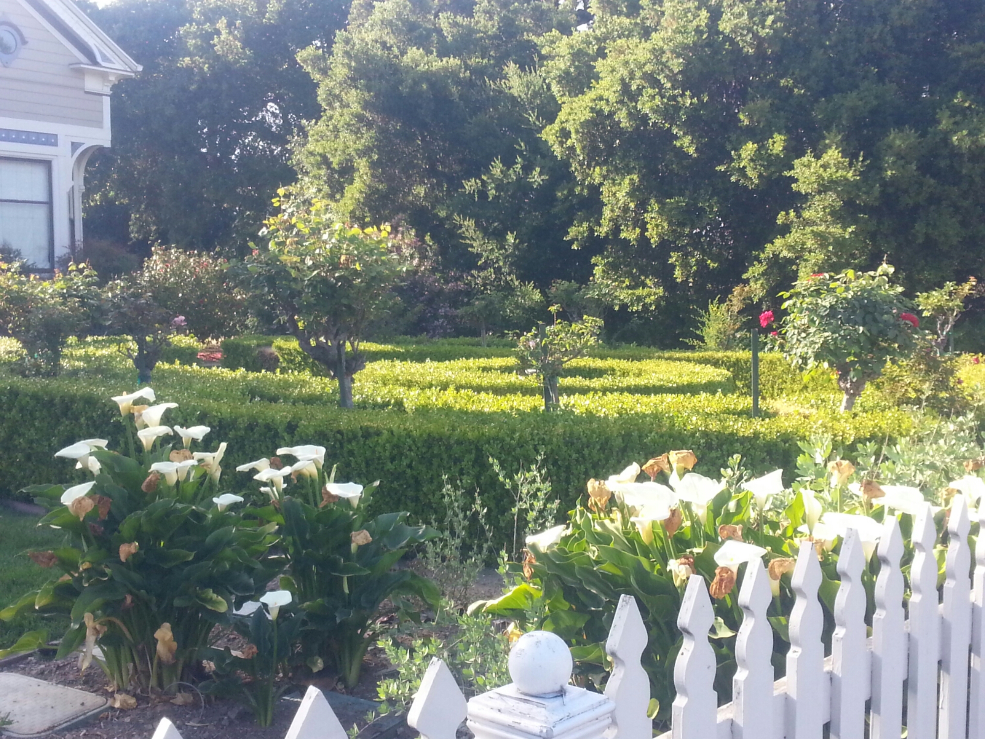 A week or so ago, a friend and I went to the Saratoga library for an event. There was no parking there, so we parked at the post office and walked from there past this historic house and orchard.
