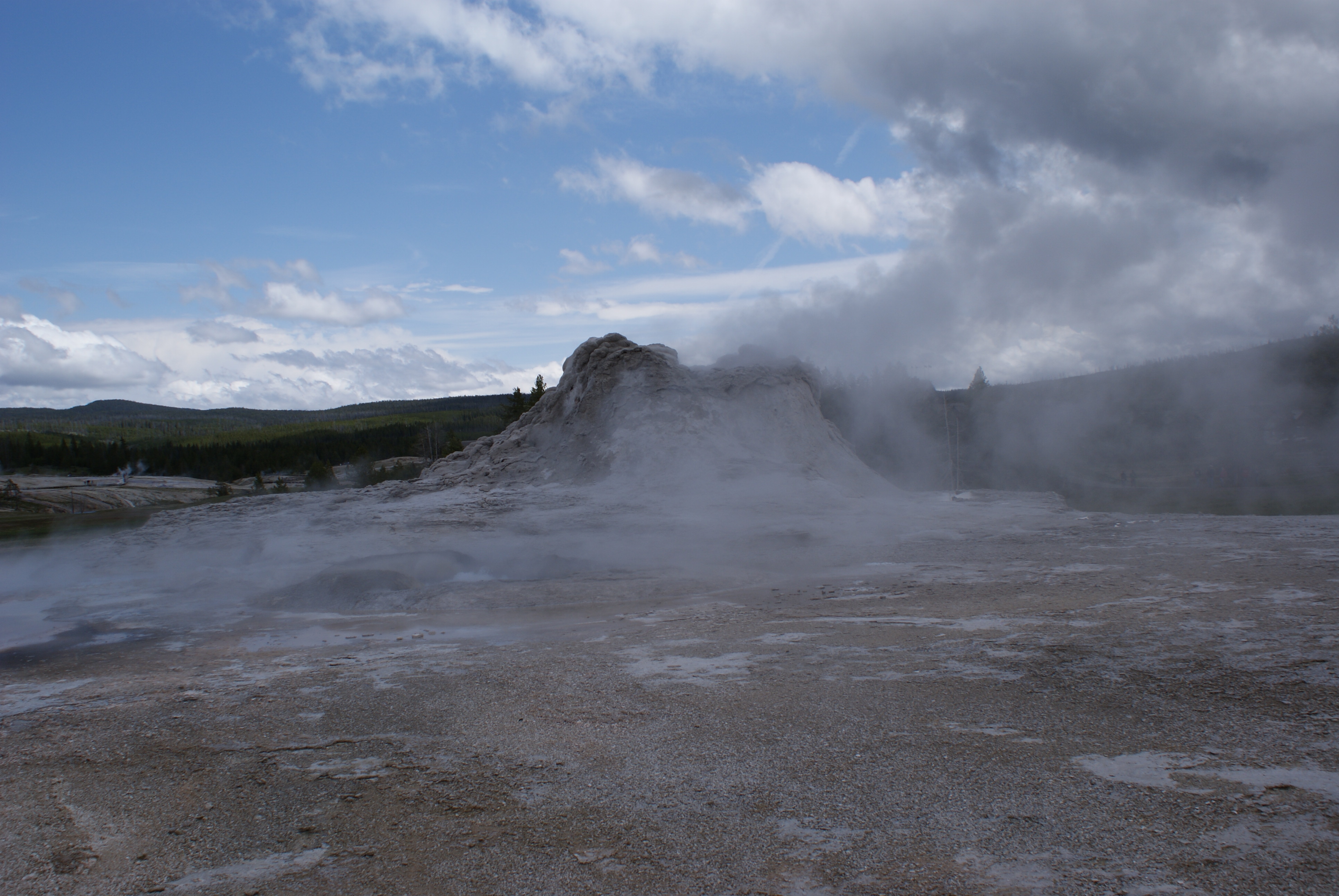 I was startled when I came upon this. I don’t research places much before I go. I like to be surprised. We approached Castle Geyser from the other side, coming uphill. The geyser was above us. The steaming white cone is so weird. I felt like I was on another planet.