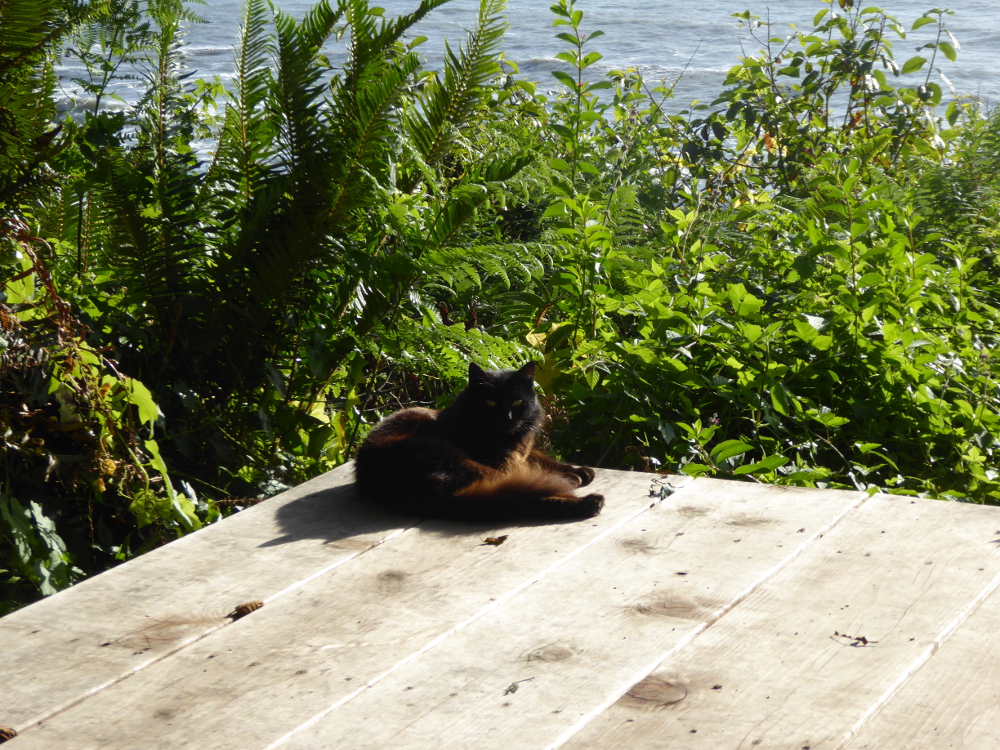 They have two nice pets who live here, a golden retriever and this cat, Spooky, who followed us all the way down to the lookout platform.