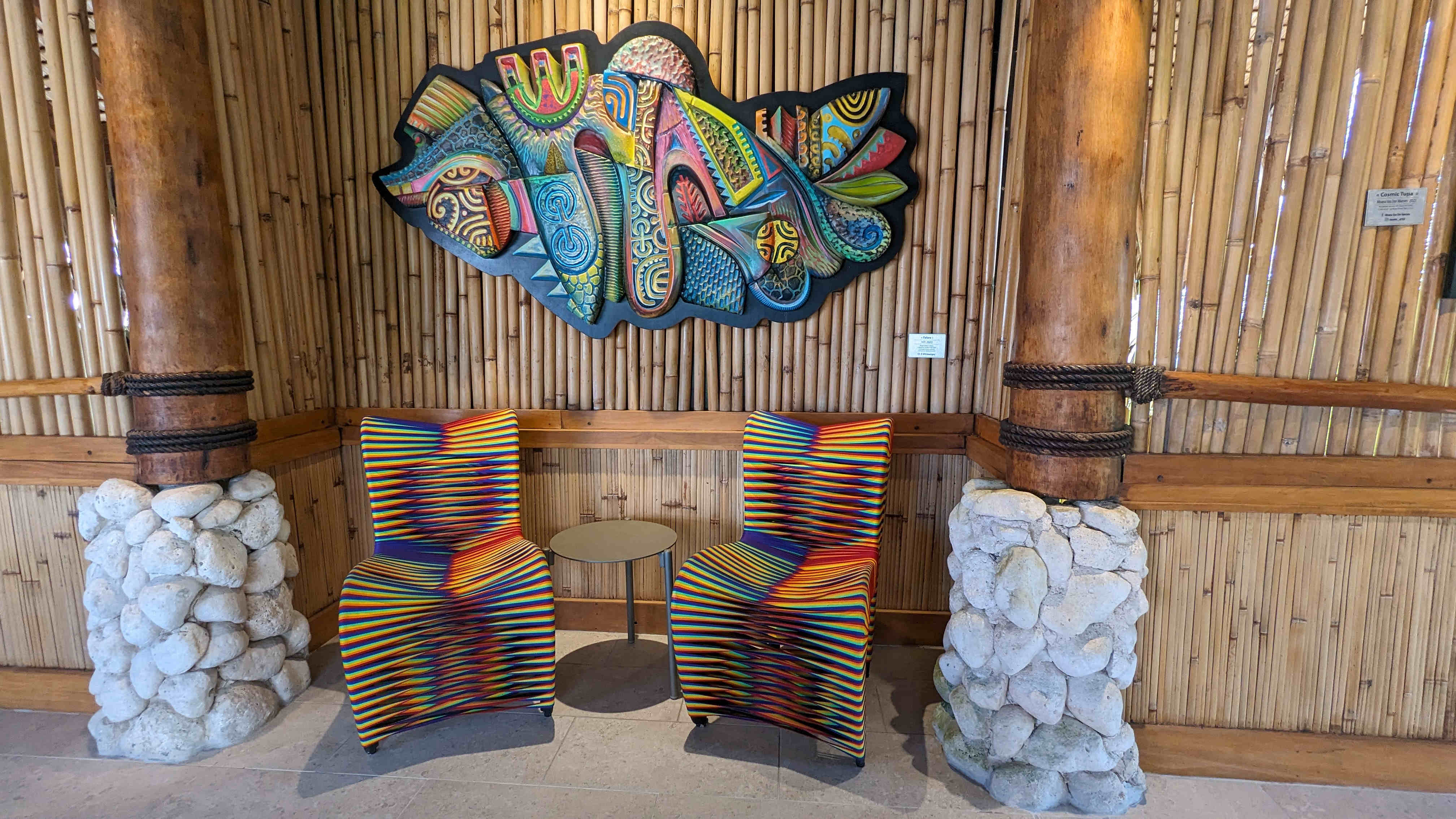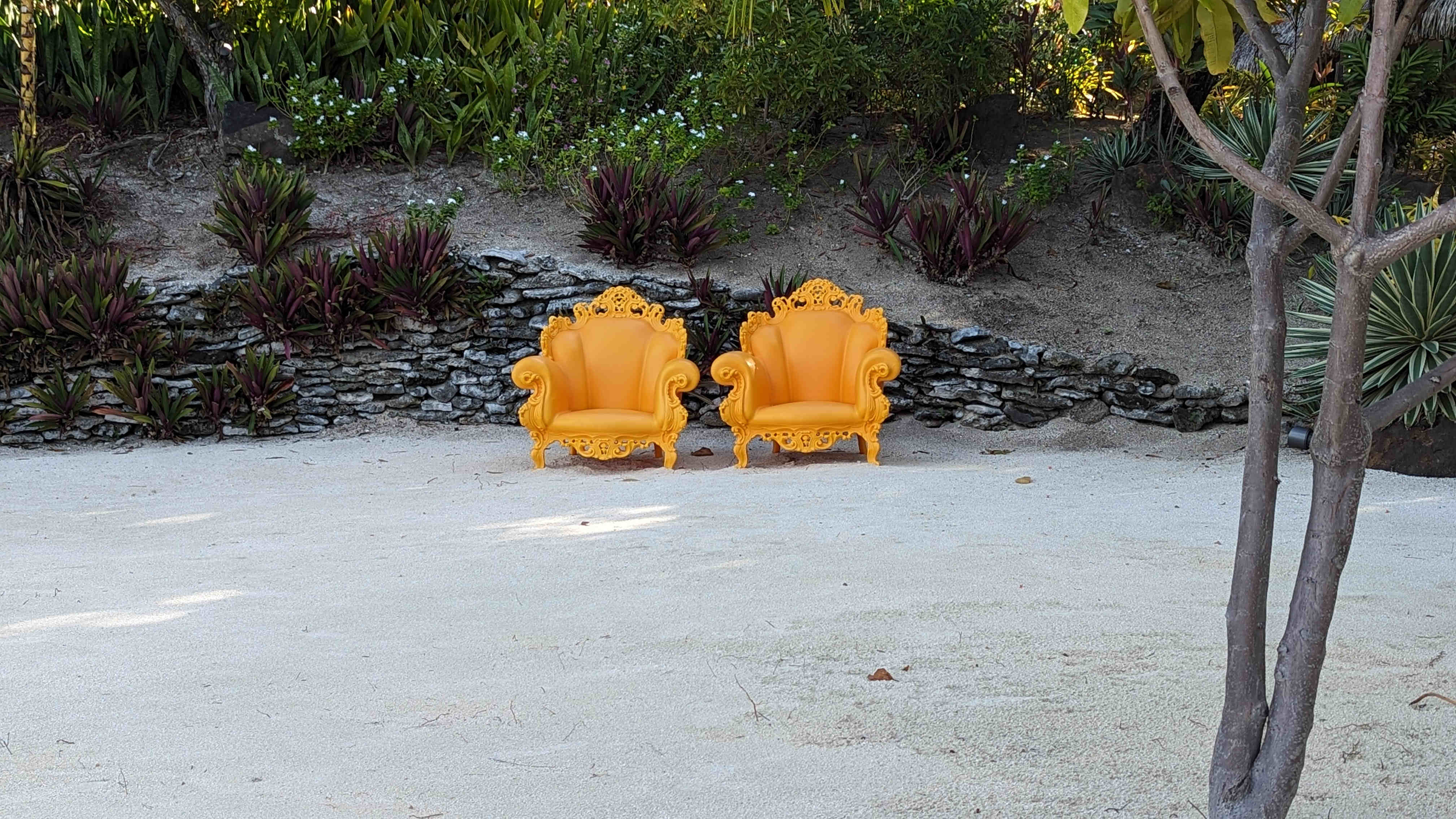 Here are some more details to show you the resort. Everywhere you looked there were interesting and pretty things to look at. They had a thing for chairs. With these colorful ones, I wondered what they were for. I mean one would walk across the perfectly manicured sand and sit on them, right? That would be funny to sit there especially because they were right by the main paths, so a lot of people would look at you. I didn’t see anyone do it. But then, what were they for?