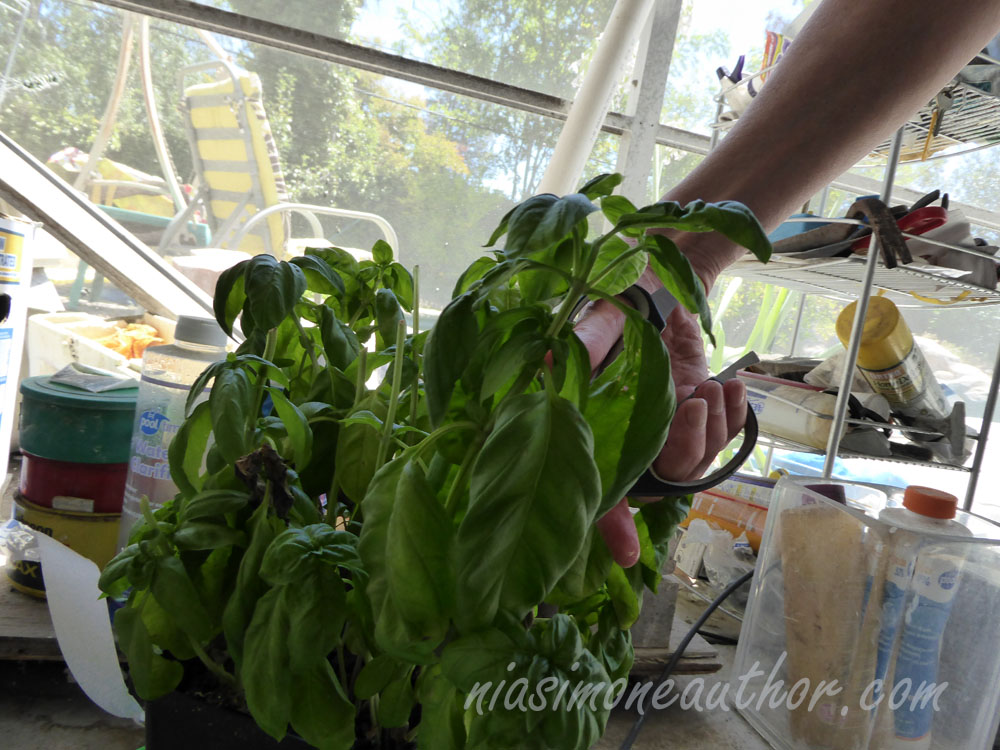 3. Gather veggies. These are from our garden. Choose whatever you want, but the tomatoes are a must. I didn’t use the little hot ones as this is Italian, not Mexican this time. But I did use the one jalapeno for flavor. It isn’t very hot.
