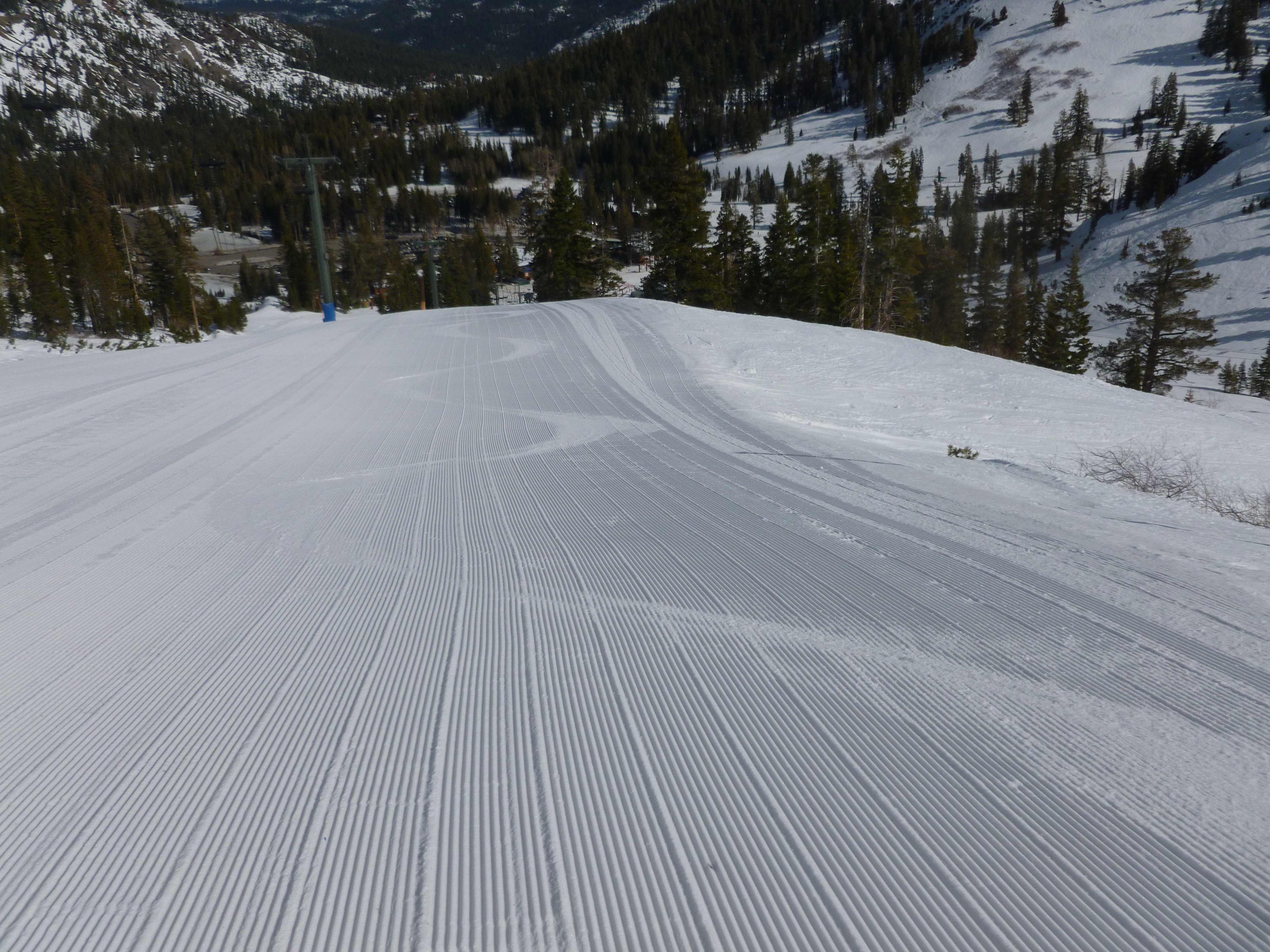 Back at the lower levels, discover untouched corduroy (skier term for groom lines) on closed Kangaroo lift.