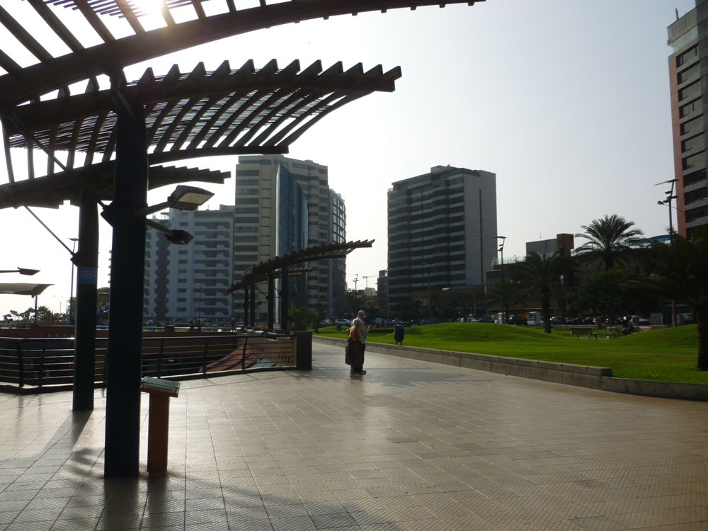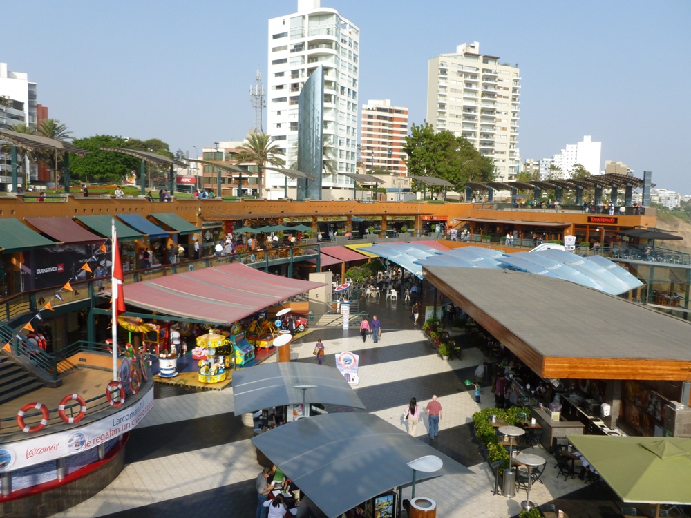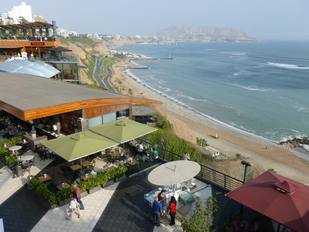 The Miraflores district is on the coast. It has major hotels and a mall built into the side of the cliff: