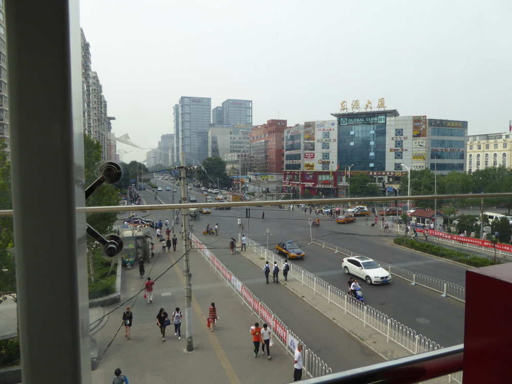 We made one mistake and went the wrong way on the above-ground connecting train. We stepped off at the first station and waited for the train in the opposite direction. I used the opportunity to take pictures out the window, finding it fascinating to see a non-touristy part of Beijing. It was called the Wudaokou Area. Apparently there are three universities in this area including one where Chinese learn other languages and foreigners learn Chinese. It is written about by a native here: http://blogs.transparent.com/chinese/top-10-places-in-beijing-wudaokou/. I was tempted to learn Chinese when I was on the Subway because the recorded voice pronounced the words clearly and I could hear the musicality in the language. It was good to spend a day really concentrating on the language. Who would have thought that a trip on the subway would have been a lesson in Chinese? I asked our guide, the previous day, why they had signs in English. She said for convenience. I asked if it was because there were a lot of American business travelers, and she said, no, it was that they are teaching English in the schools now, and it is a good common language. Anyway, it was interesting to listen to the translations on the subway.