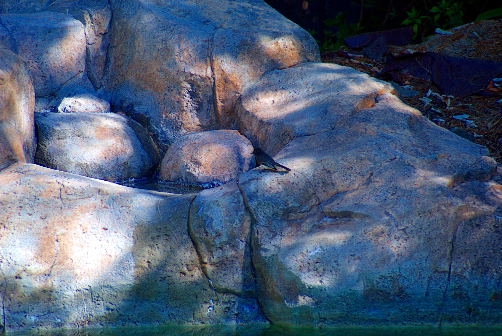Dozens of birds come to bathe and drink out of our waterfall every day. They usually come in groups of the same type. I really enjoy watching their antics. Yesterday, when the pools were filled with at least a dozen birds, I decided to try to photograph them for today’s blog post, grabbed my camera and stepped out my office door.
