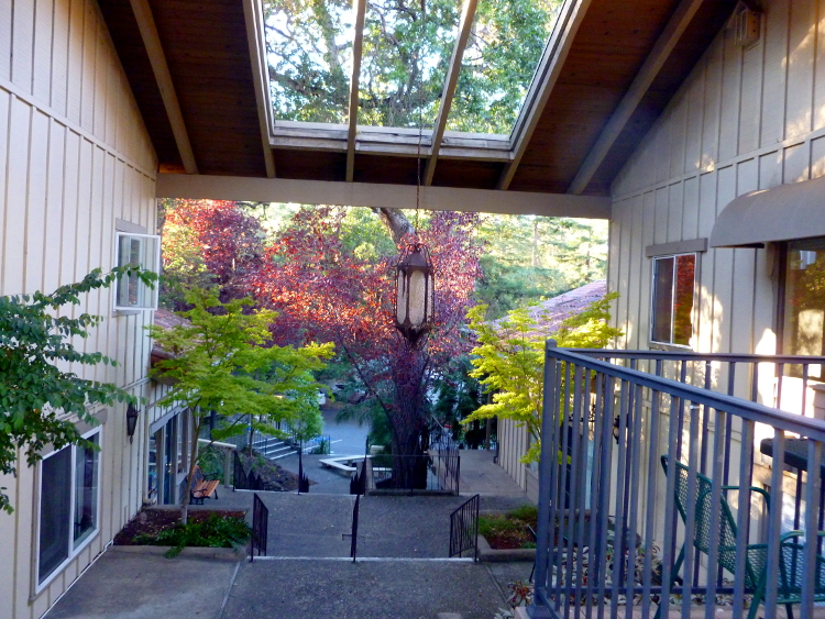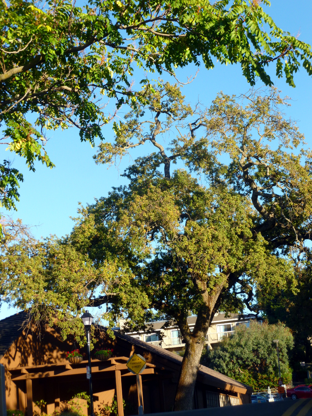 Saratoga is known for its trees. (Sorry the horizon is tilted. Picasa has excellent horizon-adjustment software, but I didn’t like other things it was doing on my computer, so I uninstalled it. I don’t know how to easily straighten the horizon in GIMP. Speaking of which, by the way, all of today’s photos have GIMP’s color white balance and color enhance applied. The photos were pretty in their original state, but I thought the enhancements helped them “pop” for web display without changing the hues too much. (Although the second photo has more blue in the patio and railings than it should.)