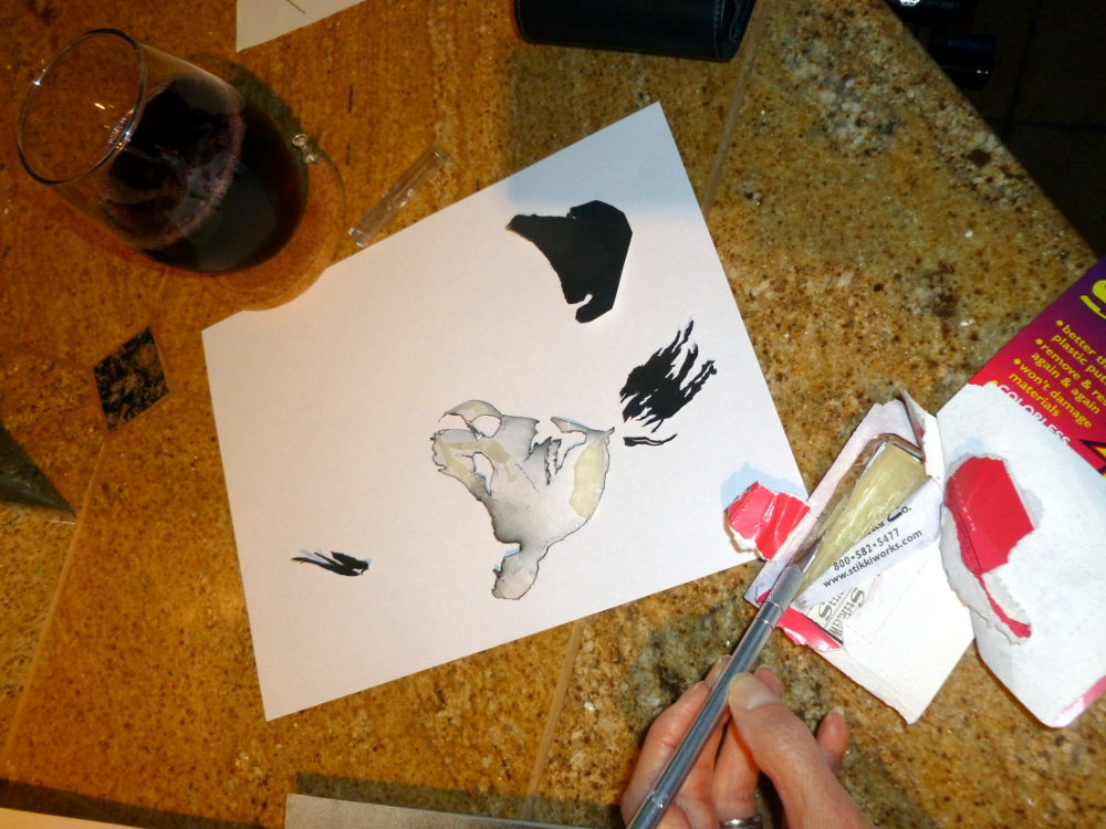 Conclusion: Since the spray painted stencil was less of a disaster than the tempera paint, sangria is better for art work than coffee.