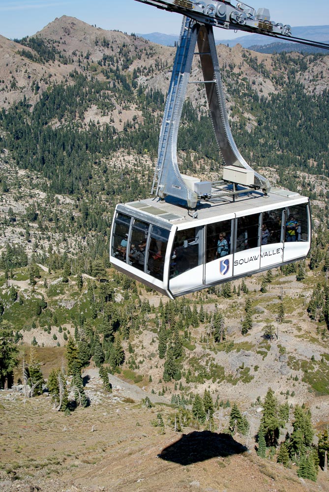 Today we rode the aerial tram to the top of the mountain in Squaw Valley. This is a different tram than the one I rode growing up. It’s smaller and doesn’t swing as much when it goes over the towers, which is great. I guess they thought it was time to stop sending people sprawling. I never saw that happen, but it must have sometimes.